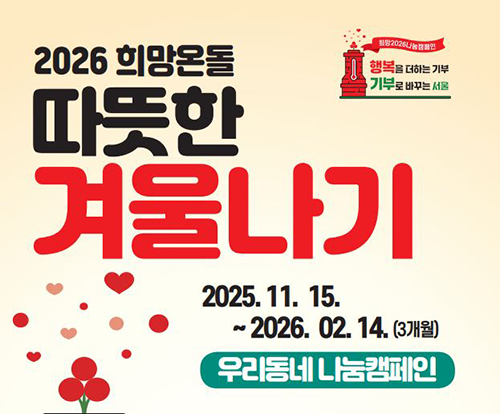 작은 나눔이 모여 큰 사랑이 되고, 그 사랑이 다시 누군가의 희망이 되는 선순환의 기적! 서대문구는 한 해 동안 ‘나눔1%의 기적’과 ‘따뜻한 겨울나기 사업’을 통해 이웃에게 희망의 온기를 전했습니다. 함께해서 더 따뜻한 서대문의 나눔은 올겨울에도 계속됩니다.