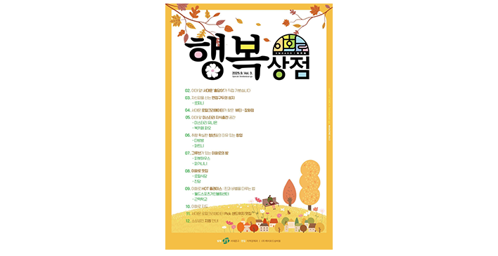 이화여대 인근 상권의 특색 있는 가게와 맛집, 상인들의 이야기, 상권지도 등을 담은 이대 상권 홍보 잡지로 2024년 11월 창간했습니다. 잡지에는 이대 거리에 위치한 각 점포의 자세한 정보를 담고 있는 QR코드가 게재돼 있습니다.
