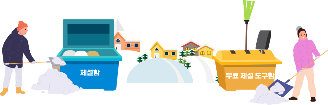 쌓인 눈을 치우는데 필요한 빗자루, 눈삽, 넉가래 등 제설 도구를 넣어두는 함입니다.